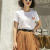 Áo lụa nữ thiết kế dáng cổ thun co giãn có thể để kiểu trễ vai hoặc cổ thuyền, tay lồng đèn bo thun gấu, họa tiết hoa hồng. Áo được may bằng vải lụa cao cấp, mặc mát, thoáng.
