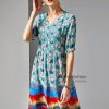 Đầm ôm suông thiết kế dáng tay lửng, cổ V. Đầm có eo xếp ly thắt nơ. Đầm nổi bật với họa tiết hoa ly phối sóng biển. Đầm được may bằng chất liệu vải lụa cao cấp.