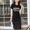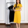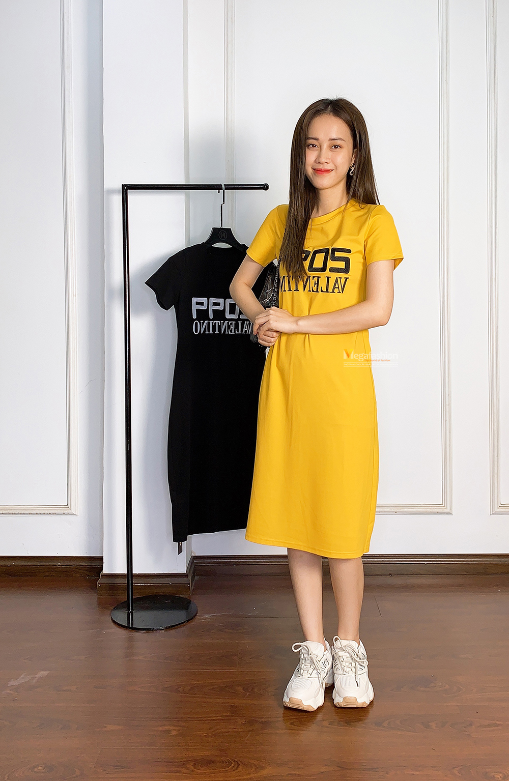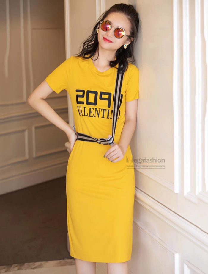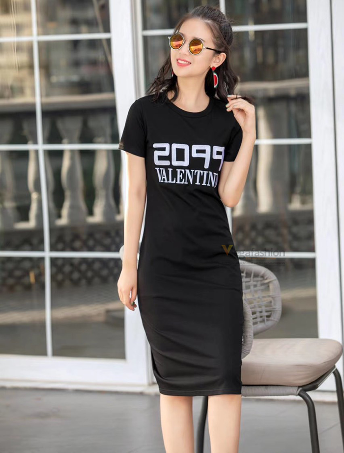 Đầm thiết kế dáng suông. Thiết kế cổ đầm dáng tròn, tay đầm dáng ngắn. Đầm tone trơn phối chữ “2099 Valentino”.
