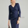 Đầm thiết kế dáng suông. Thiết kế cổ đầm dáng chéo, tay đầm dáng dài. Đai eo đầm thiết kế chiết ly đính đá, vạt đầm chéo.