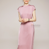 Đầm thiết kế dáng suông. Thiết kế cổ cao, tay đầm dáng hến. Đầm tone trơn màu, eo thắt đai phối họa tiết.