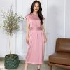 Đầm thiết kế dáng suông. Thiết kế cổ đầm dáng tròn, tay đầm dáng ngắn. Đầm tone trơn phối chữ “2099 Valentino”.