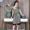 Đầm thiết kế dáng suông. Thiết kế cổ đầm dáng tròn, tay đầm dáng ngắn. Đầm tone trơn phối chữ “2099 Valentino”.