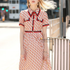 Đầm thiết kế dáng suông. Thiết kế cổ đầm dáng tròn, tay đầm dáng ngắn. Đầm tone trơn phối chữ “2099 Valentino”.